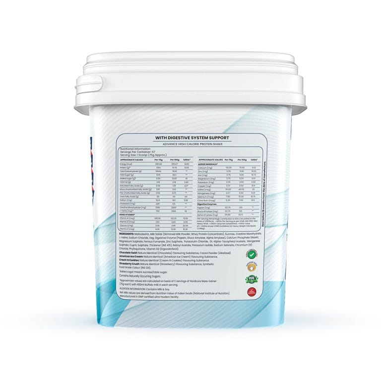 GXN Hardcore Mass Gainer is formulated with high grade imported natural and nature identical flavors (Chocolate Swirl, American Ice Cream and Strawberry Crush) for first in class taste.