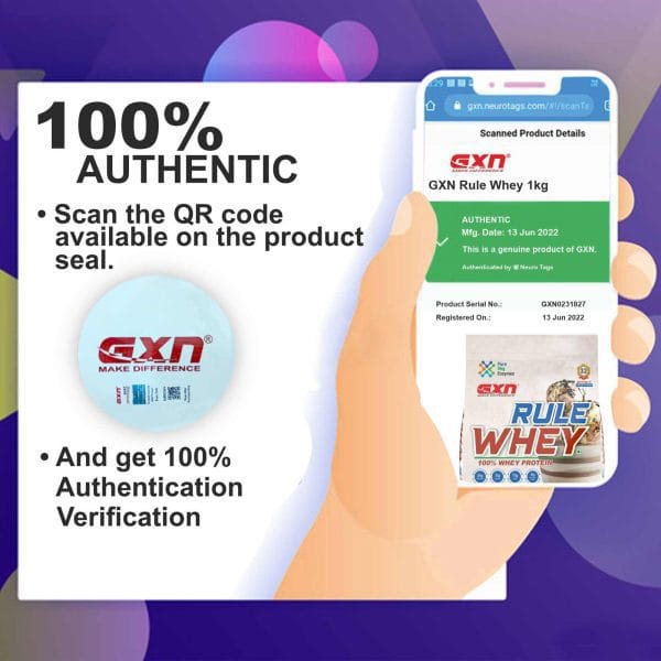 GXN Rule Whey is gluten & sugar-free with pure veg digestive enzymes to support easy digestive and quick absorption. This purest protein is a scientifically proven supplement that assists & promotes lean muscle body with peak athletic performance.The multi-functional supplement provides unbeatable strength during workouts and makes gym or sports time qualitative.