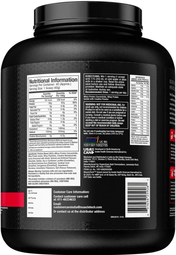 MuscleTech nitrotech Protein Chocolate Flavour, 1.8kg