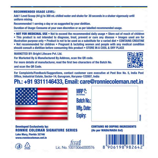 RONNIE COLEMAN (RC) PRO ANTIUM PROTEIN 5LBS Health kart pack 2027 expire
